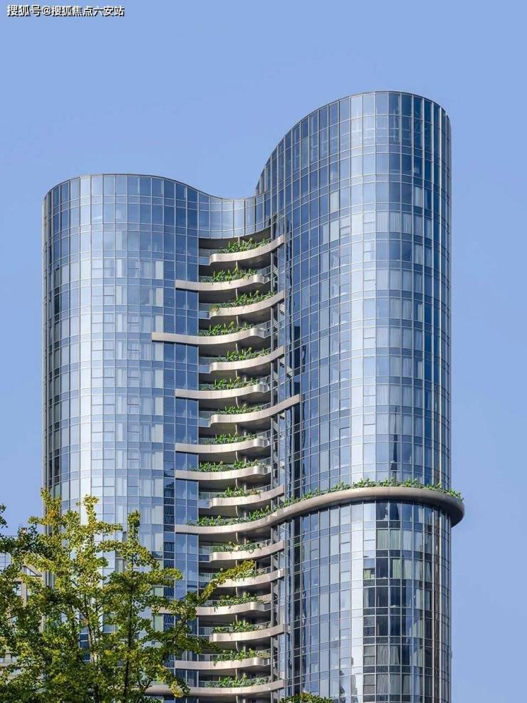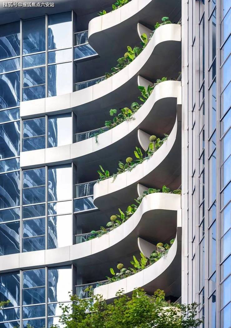 如果藏不住,那就让它show出来,其也成为空中花园的结构雏形,绿化点缀于轮廓弧度转折点,打断过于冗长的玻璃幕墙,同时掩盖了城市的喧嚣,创造出和平宁静的空间氛围。