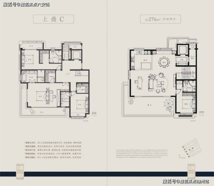 户型方面,主力建面约210-280㎡四层叠墅,采用全套房设计,朝南大开间阳光满堂,主卧“小家化”,步入式衣帽间和独立卫浴间兼备,更大尺度的面积,更开阔的家庭社交区,更舒适的套房空间。
