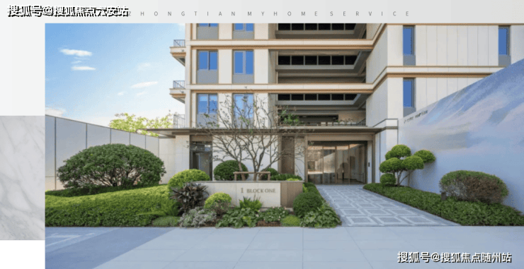 金色飘檐擦亮辨识度,南立面以大面玻璃主打,白、金、蓝灰为主调,配合部分涂料;基部用上了贝金米黄大理石,温润如月光。