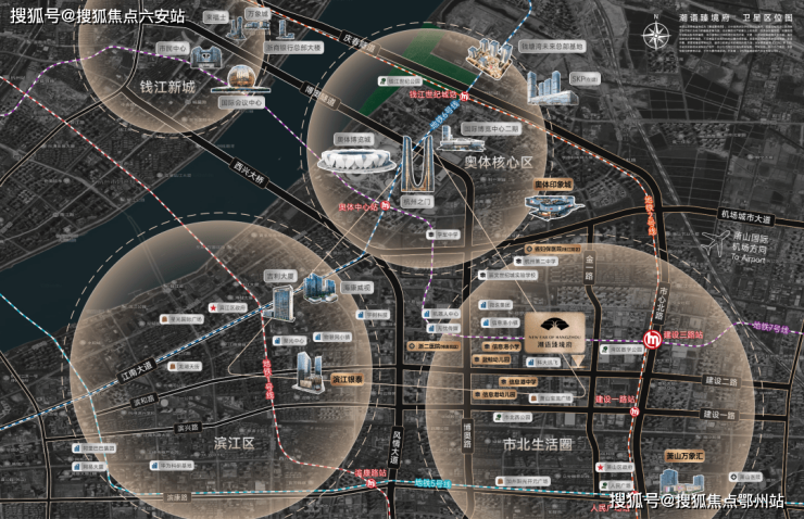 潮语臻境府项目不远处就是地铁2/7号线交汇的建设三路站,2站直达萧山人民广场,3站奥体中心,4站市民中心...几乎串起了杭州的城市中轴。