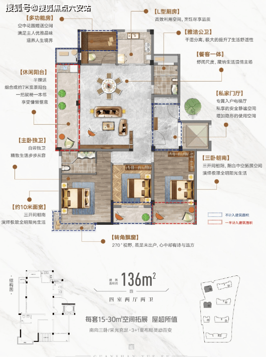 其次是产品力优势,2.0的低容积率与30%的绿化率,在同类楼盘中极具竞争力,11层电梯洋房业态告别高密度拥挤居住体验,带来墅级居住感受。一梯双开、独门独户的设计提升私密性,15-30㎡的空间拓展率让户型实用性大幅提升,毛坯交付则给予购房者更多装修自主权,真正实现“同价高配”。