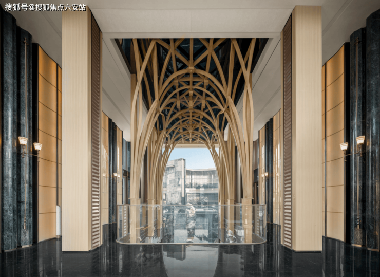 所以,如玺华院能成为越秀地产2025年杭州低密战略首发之作,融入了独创的东方造园理念,让实景呈现出和板块其他项目完全不同的气场和品质。抬头就是约43米尺度的恢宏门庭,两侧黑松非对称耸立下,是一个挑高约12米的穹顶归家大堂,再走进去,是苹果压轴旗舰店同款通高巨幅玻璃,直接向下俯瞰会所和园林。