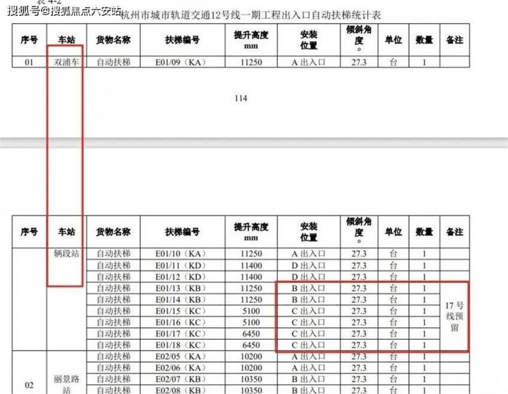 🔴规划地铁17号线,在最新发布的《杭州市城市轨道交通12号线一期工程自动扶梯、电梯设备招标公告》中,明确提到12号线在双浦站已预留17号线换乘口