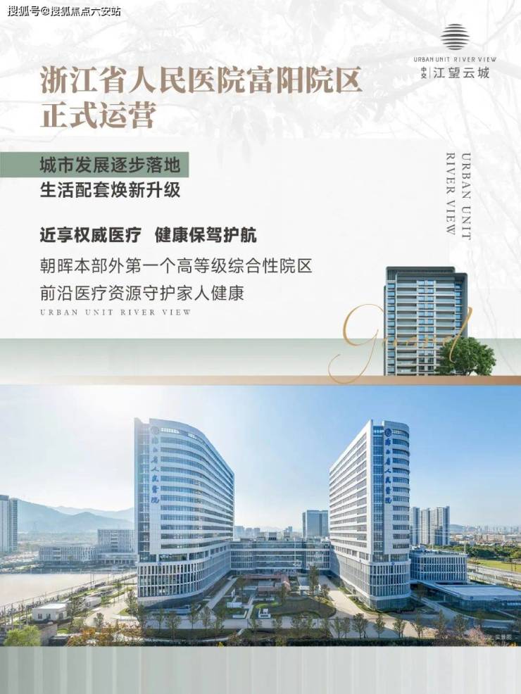 [医疗]:浙江省人民医院富阳院区(约0.4km距离,主体完工)——朝晖本部外第一个高等级综合性院区,前沿医疗资源守护家人健康。