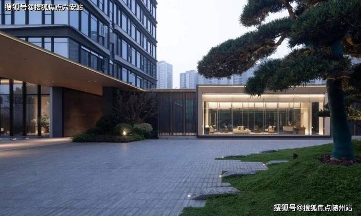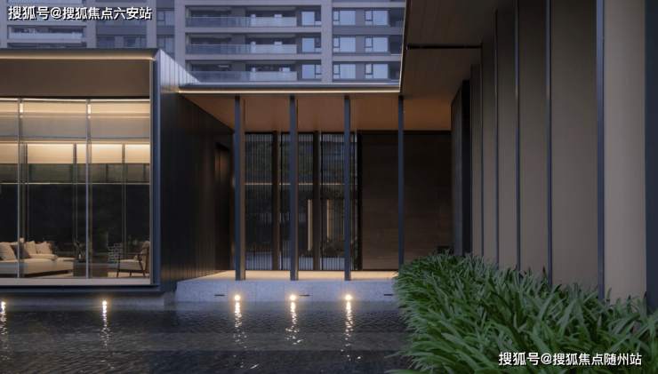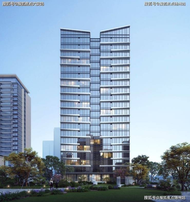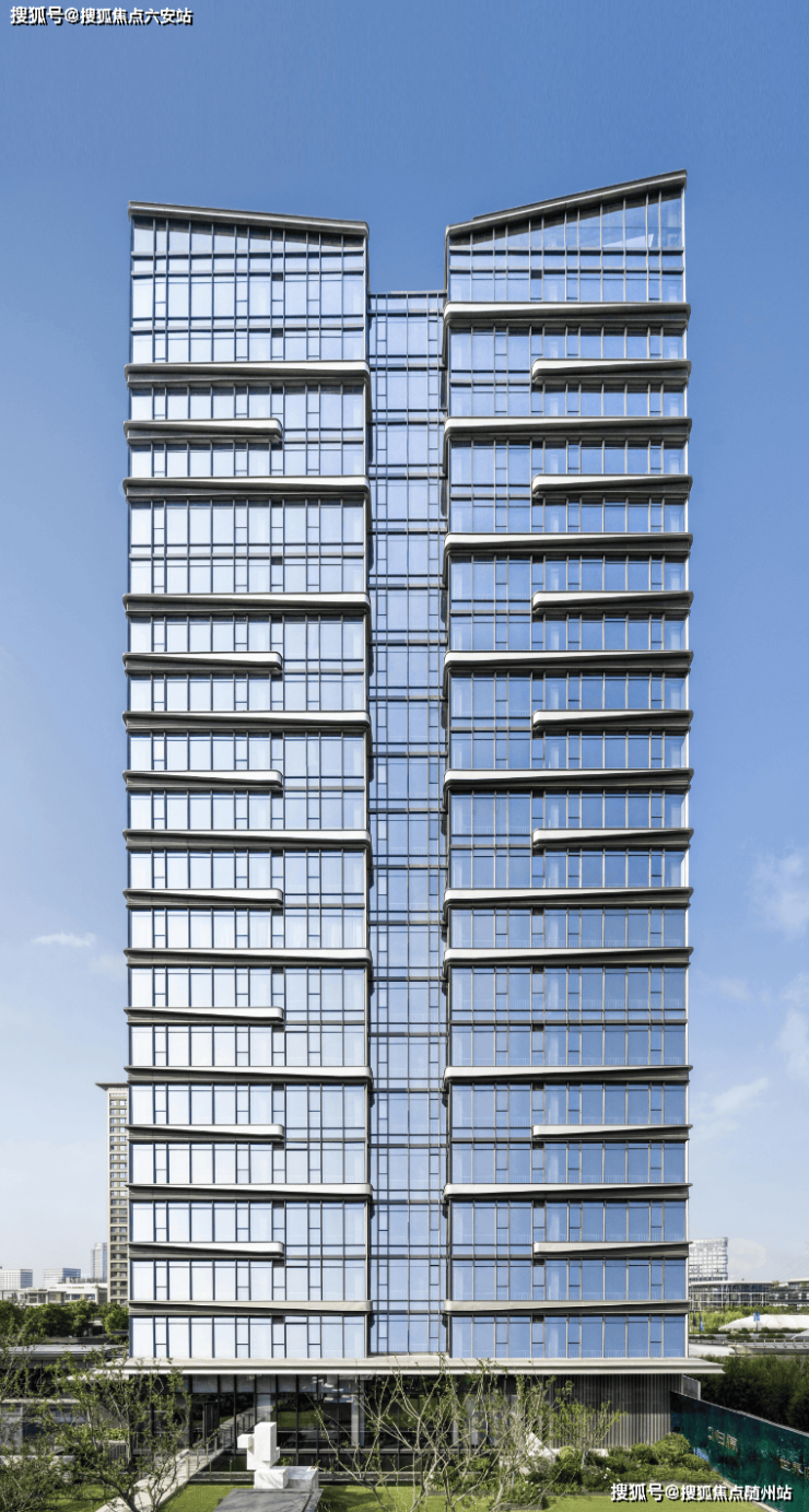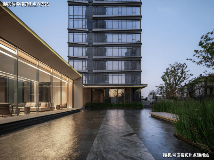 项目以高奢酒店的设计手法,呈现更具公建感的立面。通过玻璃+铝板打造出错动的横向线条,远远看去波光粼粼,宛若两岸江面波光迭起,潋滟相汇。流淌的先锋,倒映云端,气势磅礴之间,浩渺烟波,又自然消隐,归于静流。