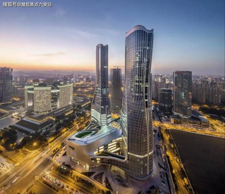 两栋螺旋形的“双子塔”造型取意于奔腾翻涌的钱塘江潮水,借涌潮现象的优美曲线及层层相迭的自然形态,外形扭转而上250米直抵云霄俯瞰江景。作为杭州第一座面向全场景的城市综合体,杭州来福士中心满足了顾客购物、用餐、休闲娱乐、居住、商务等多元化需求,是名符其实的24小时跳动不息的摩天立体城。