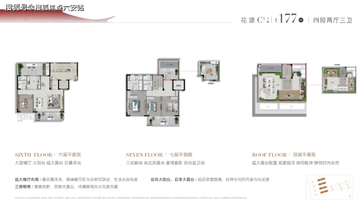 下叠:南向50-210㎡私家庭院,6.8米挑高地下室(可改酒窖/影院),三房朝南+双阳台,推窗见山景。