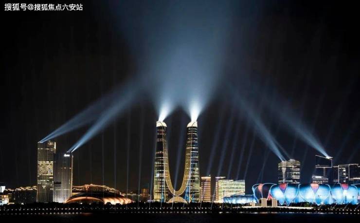 杭州之门采用“光润世纪”泛光照明方案,寓意杭州新时代之光被杭州世纪中心点亮。夜晚,整座建筑如同一颗明亮的明星,将杭州城市景观与现代办公环境完美融合。