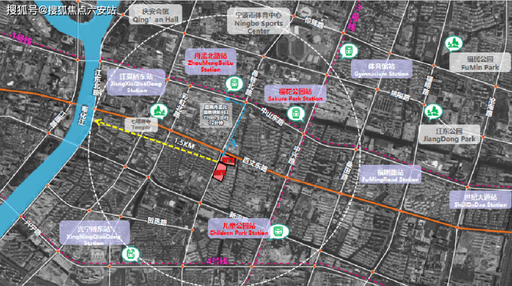 生态配套方面,项目周边公园环绕,生态环境优越,为业主提供舒适的休闲运动空间。项目东北侧有樱花公园,该公园打造了可走、可骑、可跑的滨河景观公园,是贯穿式、充满活力的公共水岸开放空间,也是业主茶余饭后休闲运动的极佳去处;东南侧有儿童公园,该公园于2023年11月完成改建,配备全新的游乐设备,根据不同年龄段划分五大儿童游乐片区,周末可带孩子前往放风筝、开展儿童运动,享受温馨的亲子时光;西侧直线距离约900米有江厦公园,饭后可与家人沿着公园散步消食,欣赏江景,感受自然之美;此外,项目北侧直线距离约2公里就是宁波体育馆、游泳中心、网球馆等健身场所,为业主提供多元化的健身选择,营造健康、积极的生活氛围。