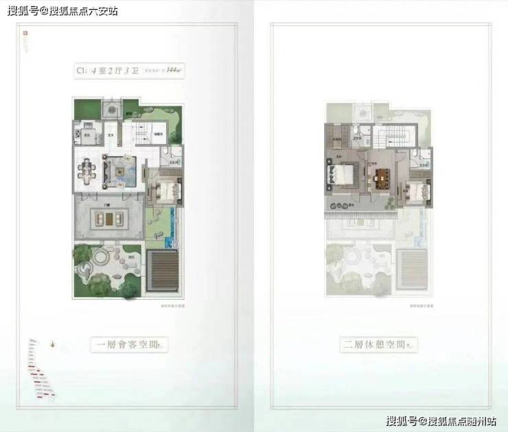 建面130-370㎡合院:涵盖三至九房,适配二人世界至世家大族。以144㎡户型为例: