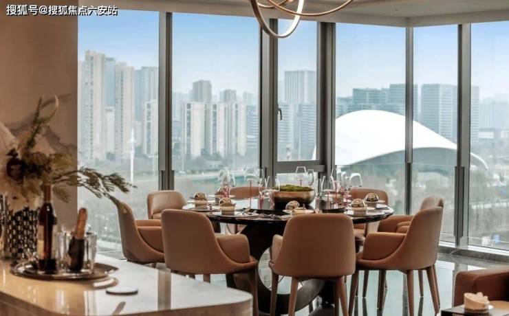 南立面采用90%全玻璃幕墙,搭配银灰色铝板,如倾泻而下的银瀑,展现公建化极简风格;270°转角落地窗设计,高区房源可俯瞰亚运公园全景,形成“环幕观景视野”。