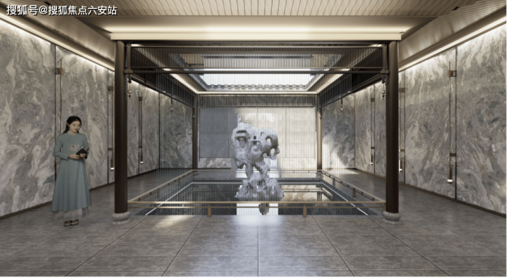 ✅ 宋式美学立面|伊朗进口“蓝眼睛”奢石+香槟色铝板,三重飞檐坡顶,对标江南里、元福里。