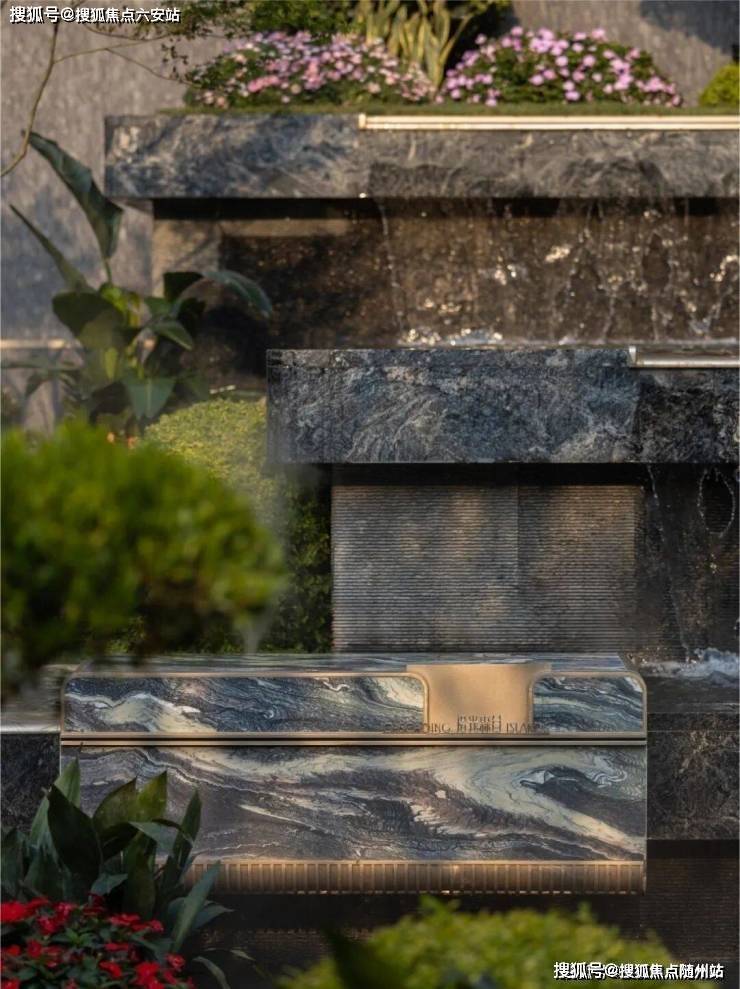 归家入口以约70米宽度、约9米高度的鎏金天幕打造,配合水景和迎客松,仪式感十足。业主可通过空中连廊或自动扶梯上到架空平台上的中心园林,享受创新三维归家体系。