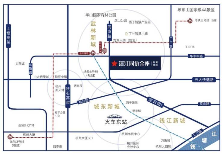 以滨江同协金座商务社区为原点,三公里半径、步行范围内汇集着多个顶级商业配套。