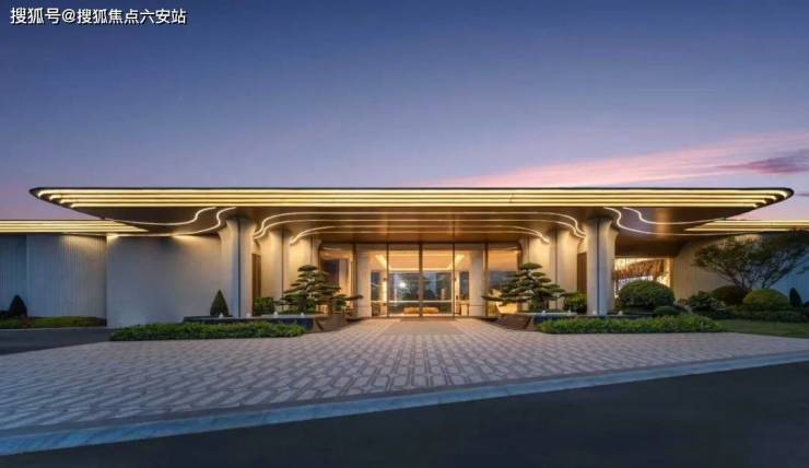 门前两棵罗汉松;园区内的中央园林围绕新型蓝宝石戏水池打造,营造澜韵迎宾、松鸣涧语、鸣泉叠韵、鸣芳拾趣、鸣香径幽等九境空间。