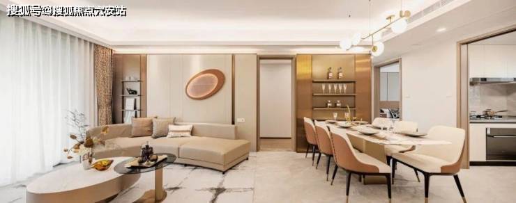 香槟色金属线条勾勒出温柔敛然的门头,内嵌式等待如星闪耀,照亮归家心情;精心打造的环岛景观,铺陈空间的恢弘之感,也为生活爱好者们度身定制优渥有品的身份标签。