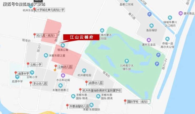 教育资源方面,江山云樾府门口就是云帆幼儿园,直线约400米范围内有云帆小学、杭州市基础教育研究室附属学校、启源中学等,真正实现了“12年全步行教育链”。