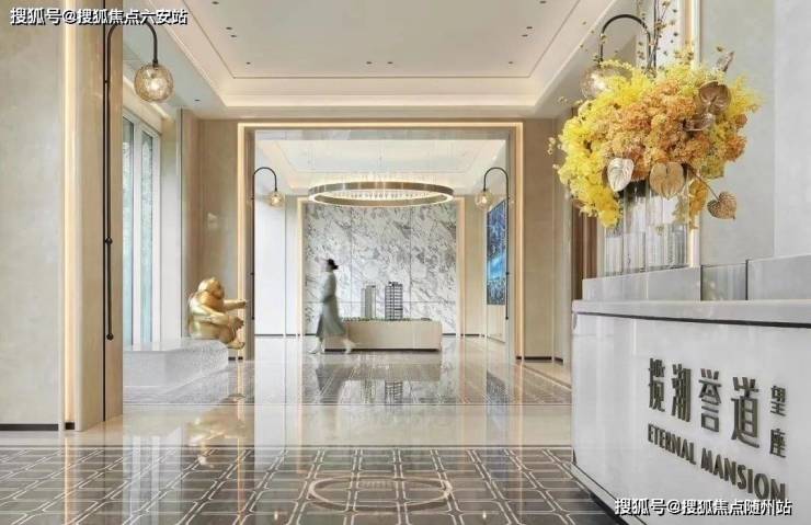 李益中“钱塘流金”:通过对称几何构图、意大利雪花白石材与紫铜线条,隐喻“天圆地方”哲学,吊灯如悬月,地毯纹路呼应潮汐规律。