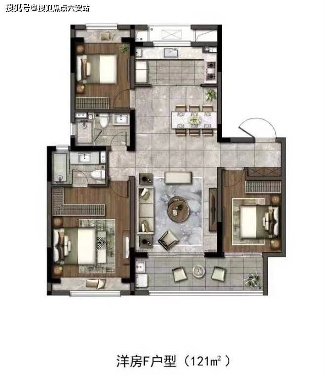 该面积段稀缺边户,南北通透,主卧套房设计,三开间朝南,双开间阳台,空间尺寸非常舒适