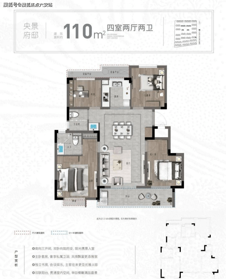 天樾四季城的户型段比较纯粹,洋房为约95方三房和约110方四房,而叠墅均为约139方四房。