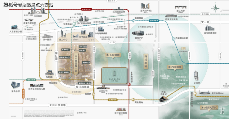 区位优势无可复制,抢占城市发展风口。保利天奕占位未科澎湃中轴之上,地处杭州未来科技城核心区域,这里是国家盖章认定的杭州未来30年主场,总投资超千亿的约2.5公里未科澎湃中轴线,由杭州市政府举全市之力打造,擘画五大城市功能板块,是“封面级中轴空间形象”和“中国式现代化城市范例”。周边阿里、vivo、字节跳动、杭州六小龙等头部名企扎堆,科创产业蓬勃发展,不仅带动了区域经济的快速提升,也汇聚了大量高净值科创人群,为项目带来了稳定的高端客群,同时也让项目具备了极高的保值增值潜力。