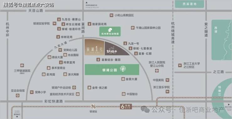 地铁6号线银湖站:直线800米,4站直达之江,7站至滨江。
