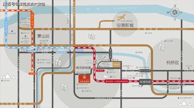 交通出行上,除了地铁1号线外,群贤路西延萧山南秀路工程将于2026年建成,建成后,可助业主随心共享杭州&绍兴双城配套。