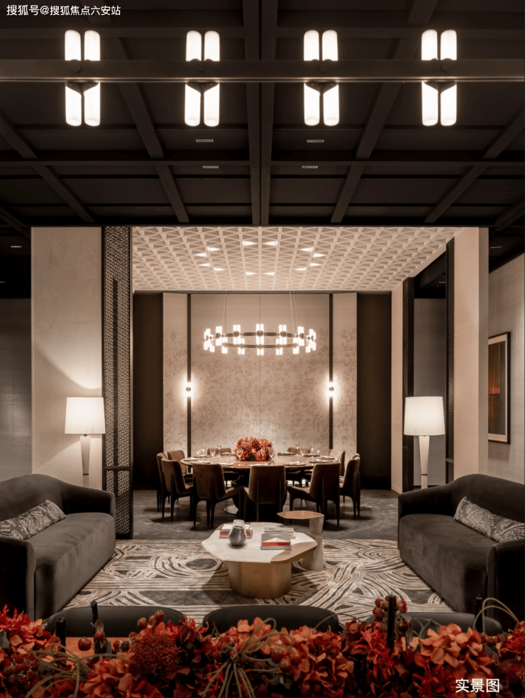 水晶景观庭院里,1300 多块安哥拉石材拼接出 “静音水” 系统,既保留流水的灵动,又不打扰低区业主休息,“四水归堂” 的设计更让景观与生活无缝融合;
