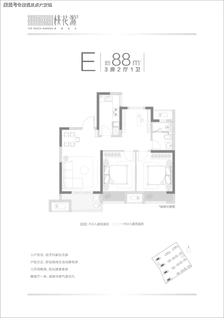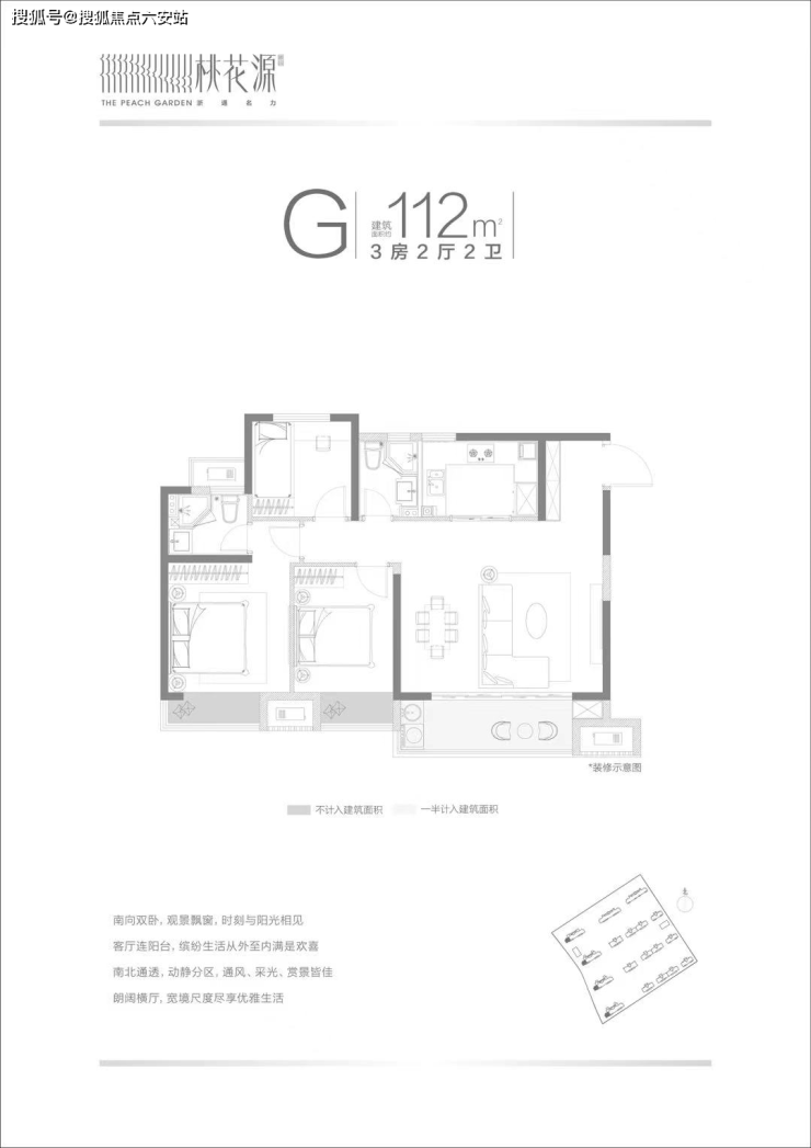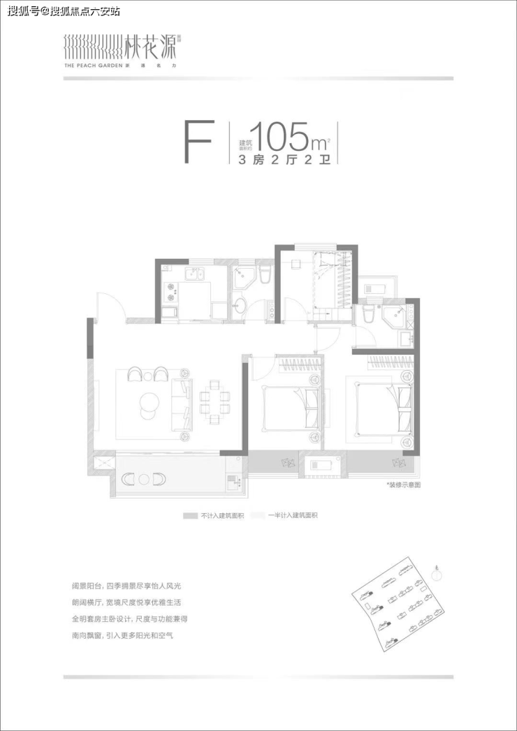 [桃花源]住宅产品的设计融合实用性和舒适性,营造质感的居住体验。小区产品普遍规划为市场热度较高的大面宽、采光通风性好的横厅户型;普遍具有三开间朝南,舒适主卧,阔景客厅阳台等鲜明特点,抓住了当下业主对于舒适和潮流的追求。