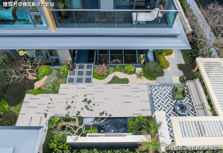 一层:入户采光庭院可搭配砂石、花艺、盆景等,成为女主人专属花艺空间。