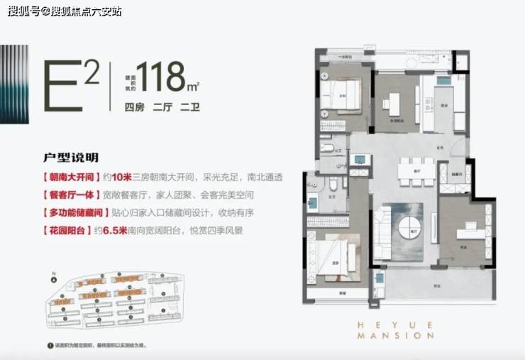 经典四叶草户型设计:如建面约139㎡的户型,采用四叶草布局,四个房间互不干扰,南向约12.3米超大面宽,客餐厅空间近40㎡,采光与通透性极佳。