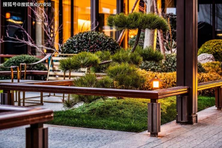 建筑设计出自gad手笔,立面以浅灰石材、咖啡色铝板、涂料为主,主打一个“水墨淡彩”,悬山顶出檐深远、举折平缓。并以简洁金属线条勾勒,将悬鱼、雀替、花窗等元素进行抽象化表达,尽显中式隽永之美。尤其是立面用的铝构工艺,工序繁复,线条立挺,专门邀请古建筑施工单位打造。