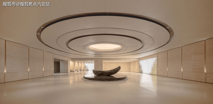 示范区建筑体采用的是米白色的莱姆石镶嵌超大玻璃,莱姆石在阳光的照耀下仔细一看有母贝的光泽效果。把光影作为设计语言引入,让建筑显得纯净,却又不失现代感。