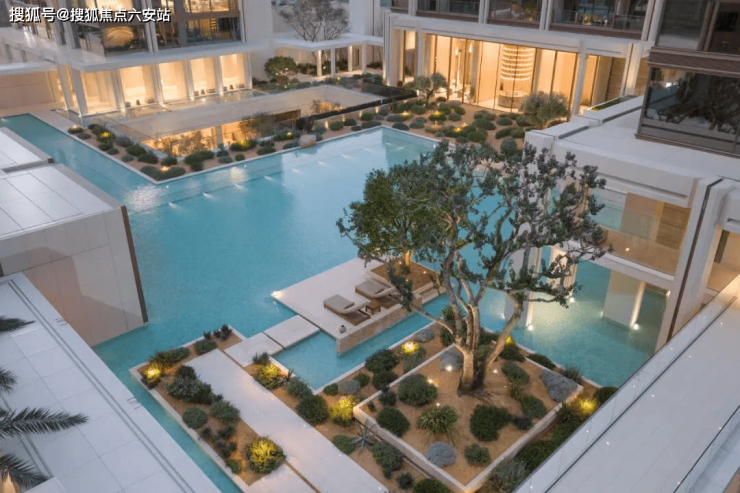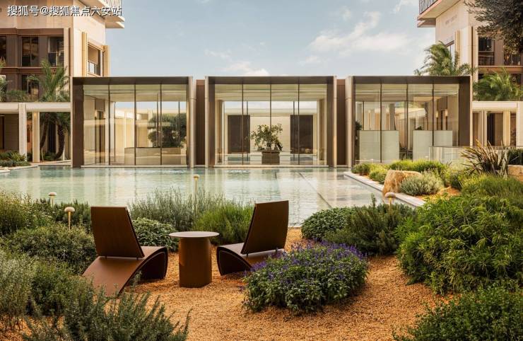 作为板块内首个地中海风情园林景观社区,区别于传统园林的堆坡造景,中天海威·璟逸配置了蓝调泳池、低饱和度石材、旱岩植物、莱姆石通铺等组合,让整个园区内充满着极简度假风。