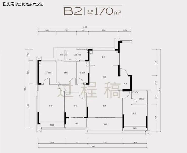 170方户型,是南厅139方户型的放大款,次卧多了一个套房空间。
