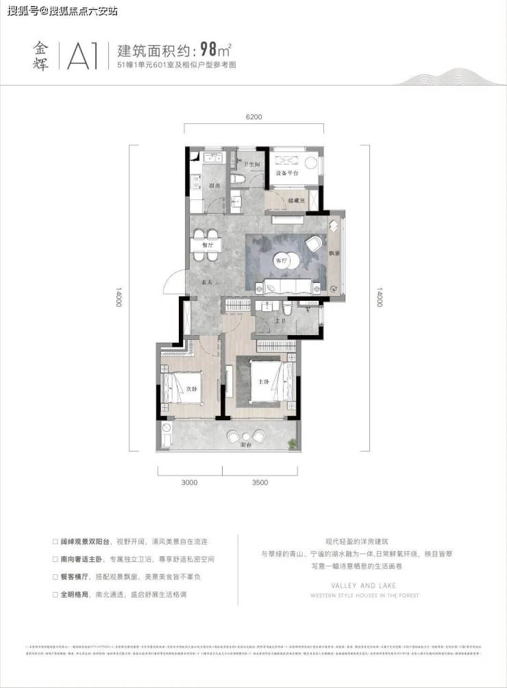 ▫️97㎡三房两卫:双阳台引景入室,储藏间可改卧室,南向L型阳台观湖景