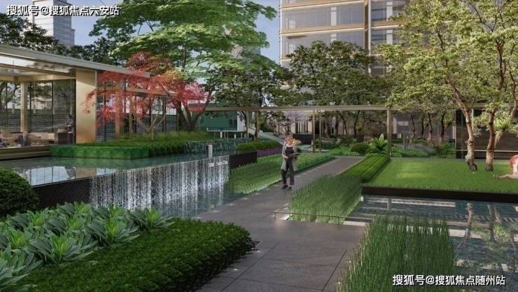 4幢围合式现代高层,最大楼间距115米,形成约1.6万㎡中央景观花园,借鉴曼谷湄南河四季酒店“立体山水”设计。
