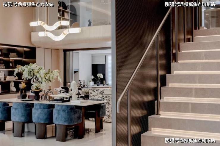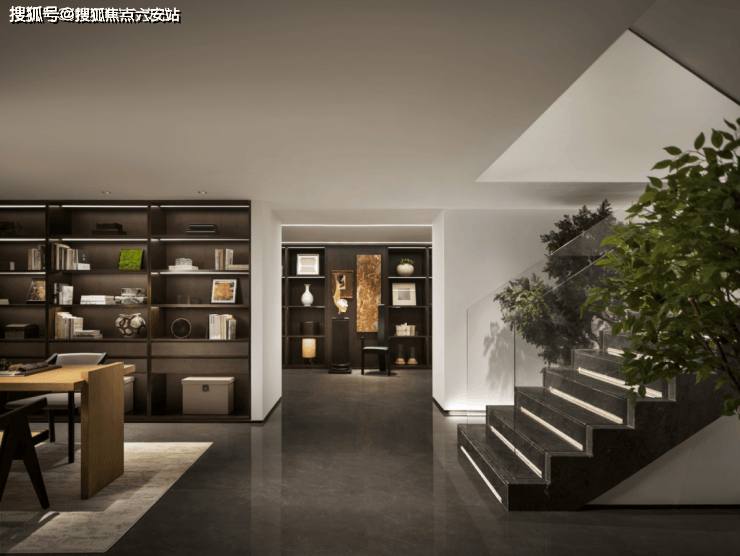 艺术空间:跃象空间的楼梯区域独具艺术气息,钢结构的大理石台阶内嵌灯带,使得每个上二楼空间的台阶像钢琴键般优雅,踏上台阶,步步高升,仿佛能听到动人的音律。楼梯之下,巧妙隐藏着一个既美观又实用的收纳空间。夹层空间的设计百变而随心,其中的书房区域,不仅是收藏书籍与艺术藏品的场所,也是会友交流、展示艺术藏品的空间。
