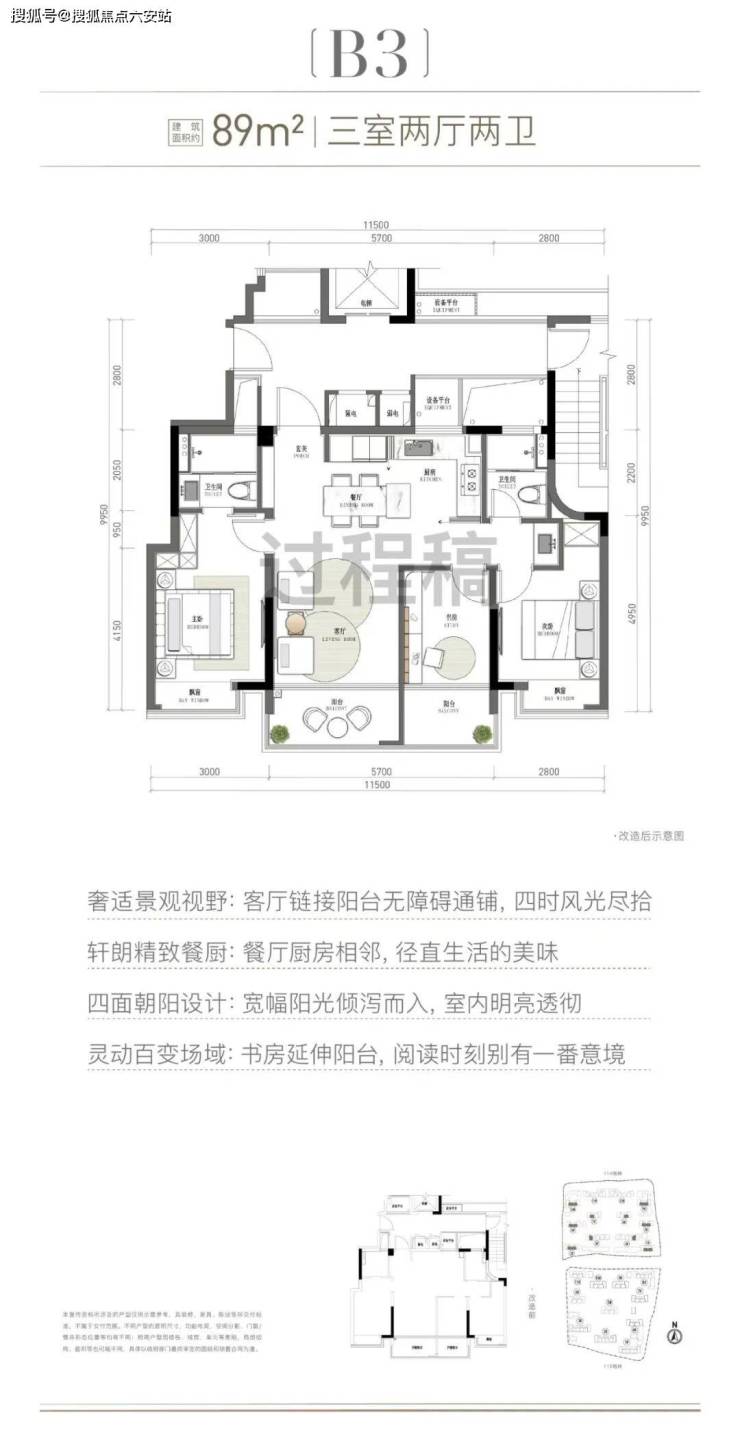 简单来说,这款户型拥有独立入户玄关、客餐厅+封包阳台、南向主卧套房+次卧……不仅功能性极强,且灵活可变,从容应对诸如三口之家到二孩家庭等未来家庭结构的变化。