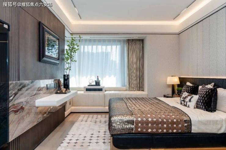 主卧270°L型转角飘窗:打破传统采光局限,光线从两侧引入,打造“被自然环抱”的私享空间,清晨观日出、夜晚赏星河,卧室秒变观景台。