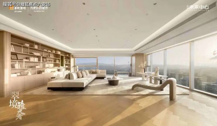 云玺大平层以"垂直墅院"理念打造,建面约340平方米的云端平墅创新采用三面宽超11米的设计,层高约3.1-3.5米,营造出开阔的空间感。主力户型拥有约22米超级面宽和270°宽幕视野,搭配超白玻幕墙,通透性卓越。