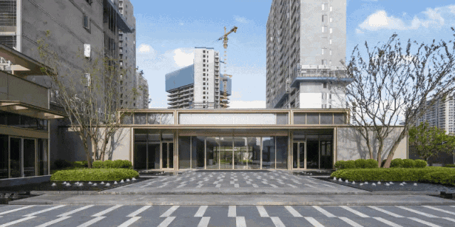 小区内部的设计也极具巧思,宛如一个极具度假感的沉浸式社区。杭曜置地中心以画里寻居,诗中筑园为主题,采用院落归家的设计手法,将城市喧嚣隔绝于外,山水真意糅融于内。营造出与家人、与自然心灵对话的空间,给人一种隐于尘世,逸于园境之感。