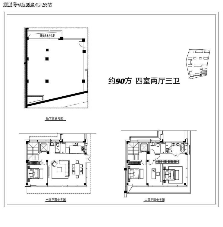 庭院面积根据私位置70-90方不等,地下室面积根据位置不同略有差异。