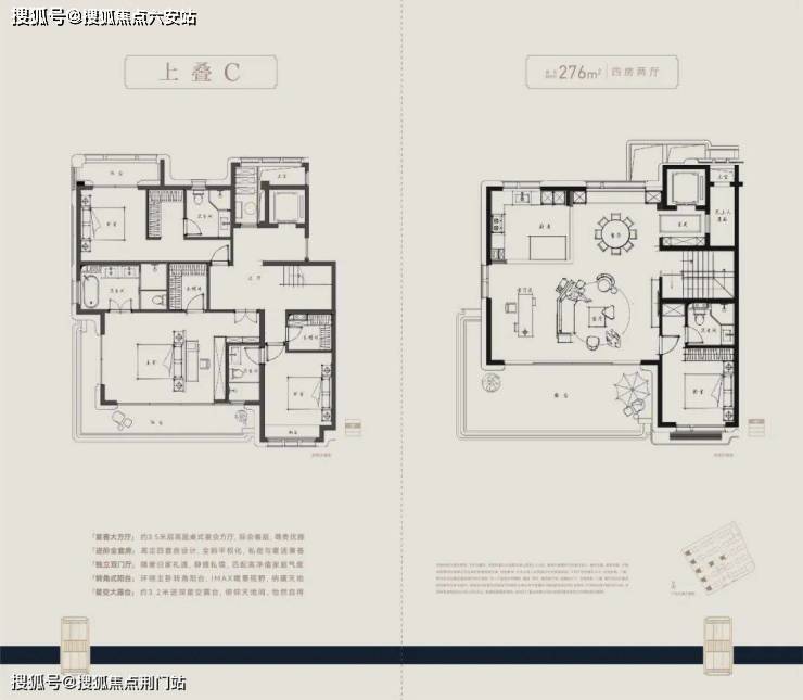 户型方面,主力建面约210-280㎡四层叠墅,采用全套房设计,朝南大开间阳光满堂,主卧“小家化”,步入式衣帽间和独立卫浴间兼备,更大尺度的面积,更开阔的家庭社交区,更舒适的套房空间。