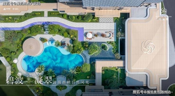 园区以“一轴多节点”布局,打造澜韵迎宾、鸣泉叠韵等九大主题空间,中心设置不规则透蓝戏水池,搭配棕榈树与风雨连廊,营造度假氛围。垂直绿化系统与童玩区、老年康养步道结合,满足全龄活动需求。
