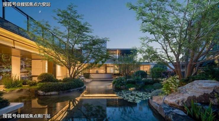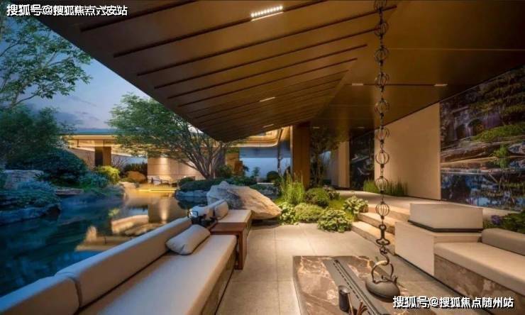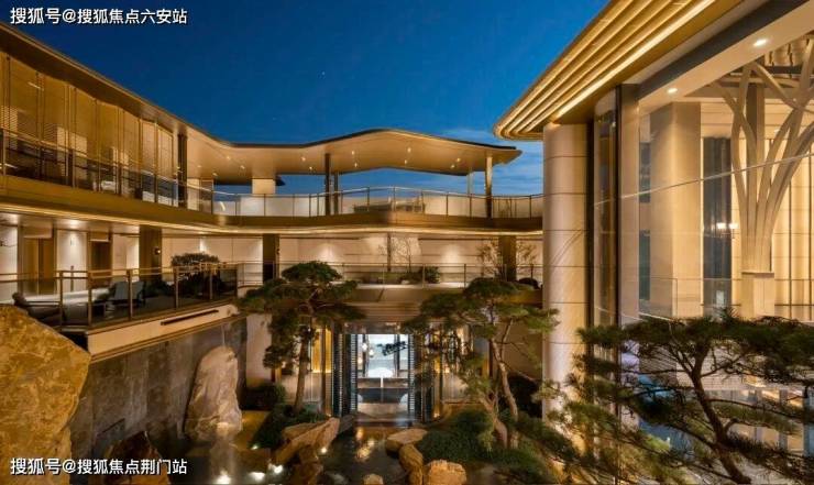景观以「四境四巷」铺陈东方礼序,「五重归家」轴线串联宽约128米恢弘门庭、约15米叠石飞瀑、约13米榫卯转译的现代穹顶等。约1300㎡下沉式庭院采用三层立体观景设计,15米叠石飞瀑再现《溪山行旅图》的山水意境。