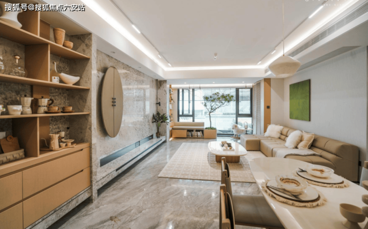 客厅对于家来说,不止是空间的延伸,更是全家活动的高频场域。如何放大公区空间的通透感与尺度感成为重中之重。