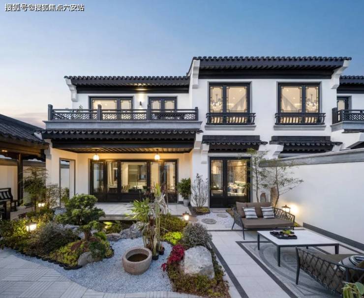 在白墙黛瓦的街巷间,结合框景、对景、漏景等传统中式造景手法,打造移步换景的江南园林雅境,呈现“堂、巷、院、宅”四进式礼序院落。