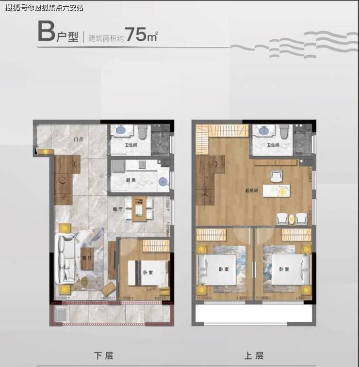 双钥匙LOFT:建筑面积约35-76 ㎡双钥匙LOFT,户型灵活多变,二层独立多空间设计,实用性高。