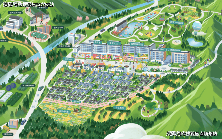 项目总占地900多亩,规划有英迪格酒店、天目in66商业街、自然探索乐园、耕心农场、自在果园、唐风合院、暖驿社区等复合功能配套,为业主提供丰富的生活场景和度假体验。